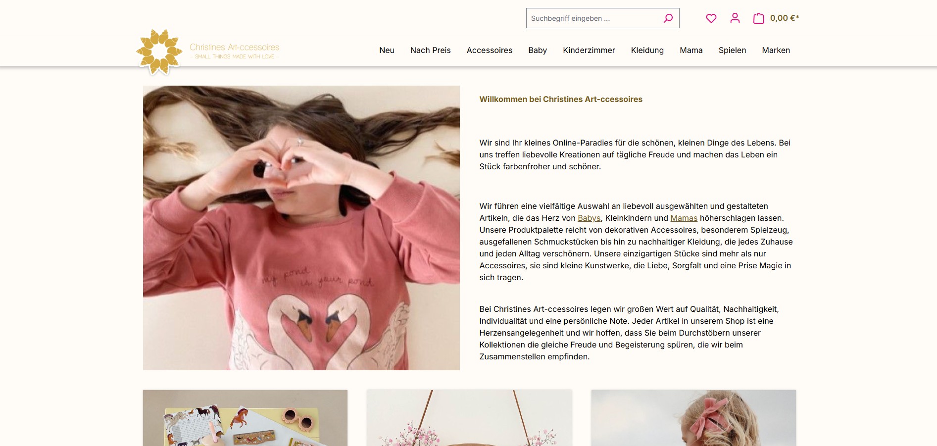 Christines Art-ccessoires bietet eine liebevoll zusammengestellte Auswahl an besonderen Accessoires, die Stil, Persönlichkeit und Kreativität miteinander verbinden. Der Fokus liegt auf individuellen Produkten, die sich von der Masse abheben und mit einem besonderen Blick für Ästhetik und Details ausgewählt wurden. Das Sortiment reicht von Schmuckstücken bis hin zu dekorativen Elementen und Geschenkideen, die durch ihren Charme und ihre Einzigartigkeit überzeugen. Dabei stehen Qualität, eine persönliche Note und ein Gespür für das Außergewöhnliche im Mittelpunkt des Angebots.
