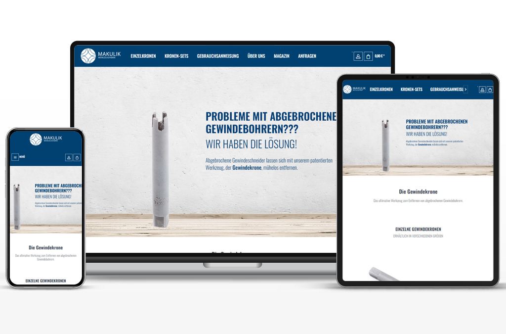 Von der Konzeption bis zum fertigen Onlineshop haben wir für die Werkzeugfabrik Makulik alle Arbeiten durchgeführt. Ebenso wurden von uns alle Artikel eingepflegt, Fotoaufnahmen erstellt und ein Blog eingerichtet.
