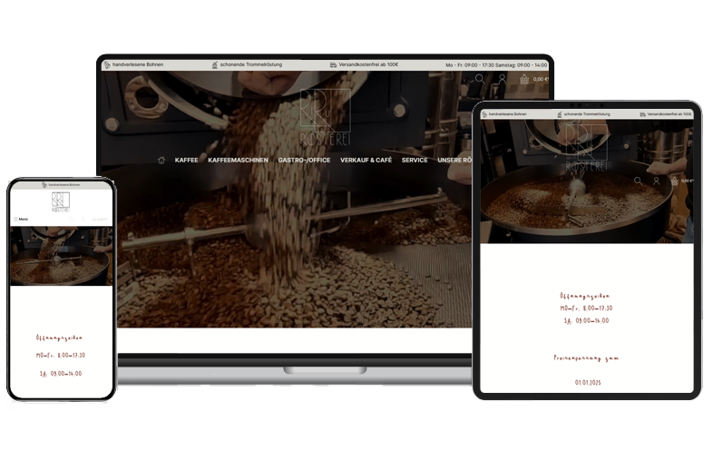 Für die inhabergeführte Kaffeerösterei Riru wurde ein individuell entwickelter, markengerechter Onlineshop auf Basis von Shopware 6 realisiert, der durch modernes Design, nahtlose JTL-Anbindung und optimale Usability zukünftiges Wachstum unterstützt.